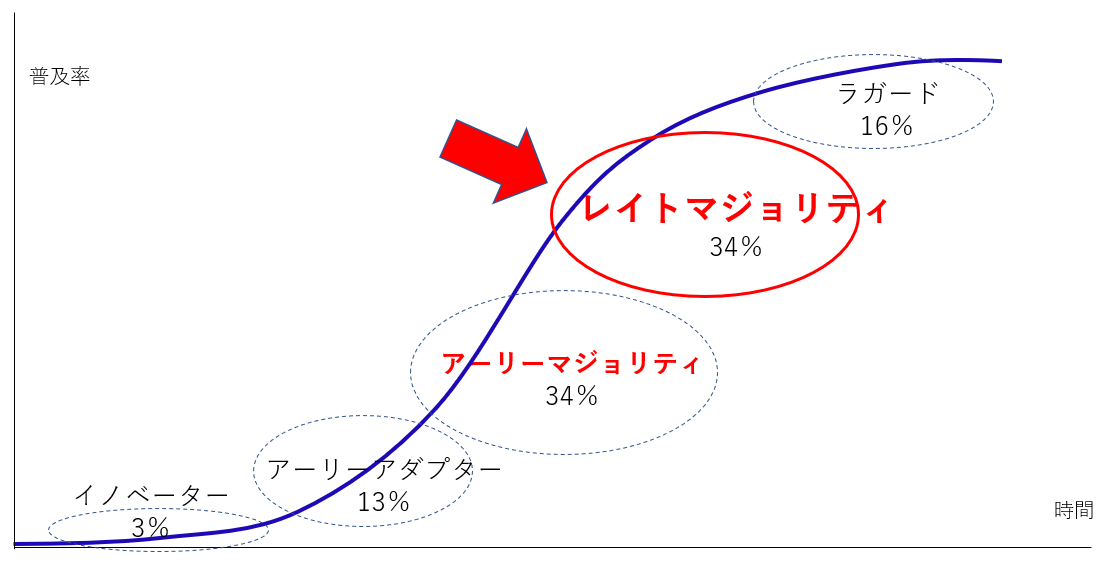 イノベーター論のフレームワークは、主に個人向け販売において想定される分類ですが、法人向けでもこの考え方はバッチリ使えます。